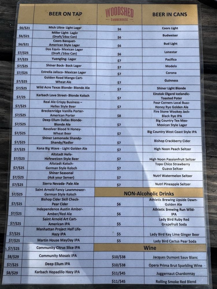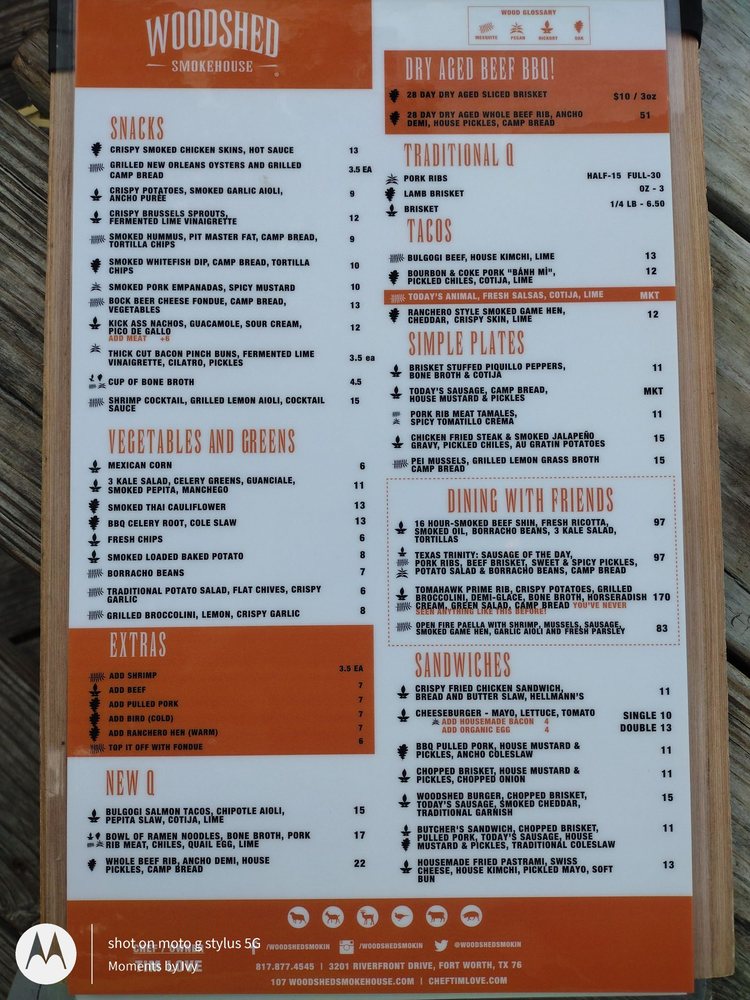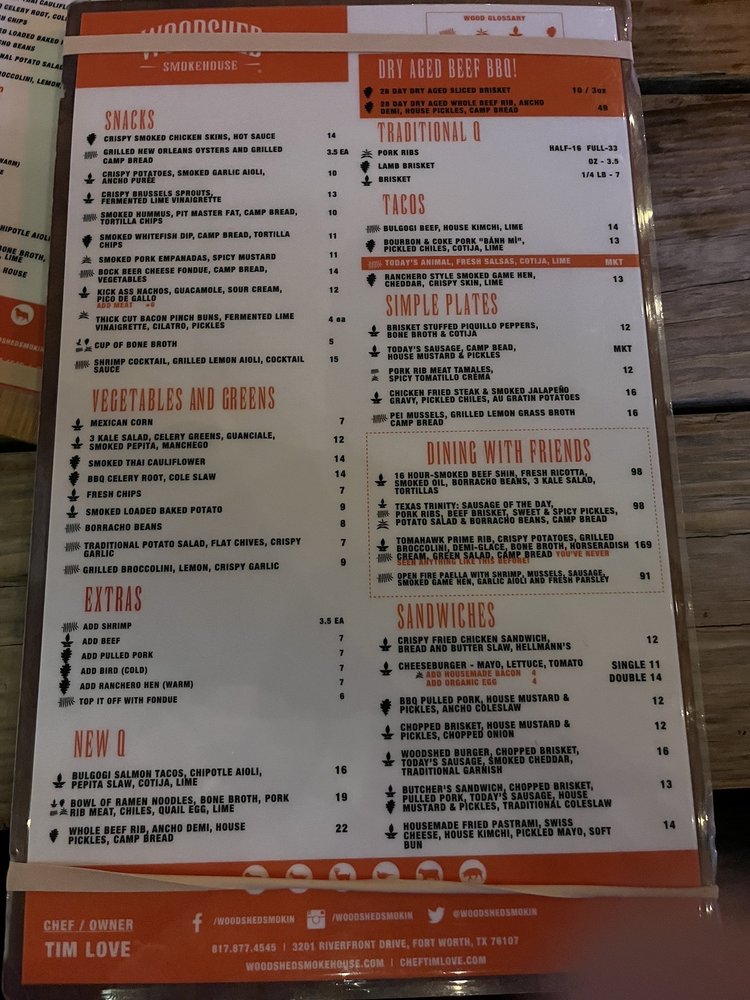 Welcome to Woodshed Smokehouse, a gem tucked along the shores of Fort Worth. Famous for its smoked meats, the menu is a vibrant blend of classic BBQ and innovative dishes. Start your meal with the Fried Chicken Sandwich or dive into the Texan staple, the Woodshed Burger, topped with both sausage and brisket. The menu also features enticing sandwiches like BBQ Pulled Pork and Brisket Banh Mi, catering to diverse palates, including vegan options.